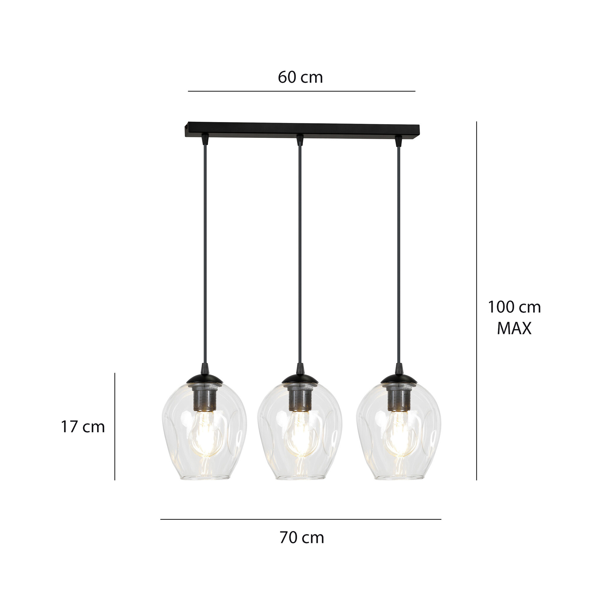 Specificaties Nokia lange 3L transparant glas hanglamp 3x E27: