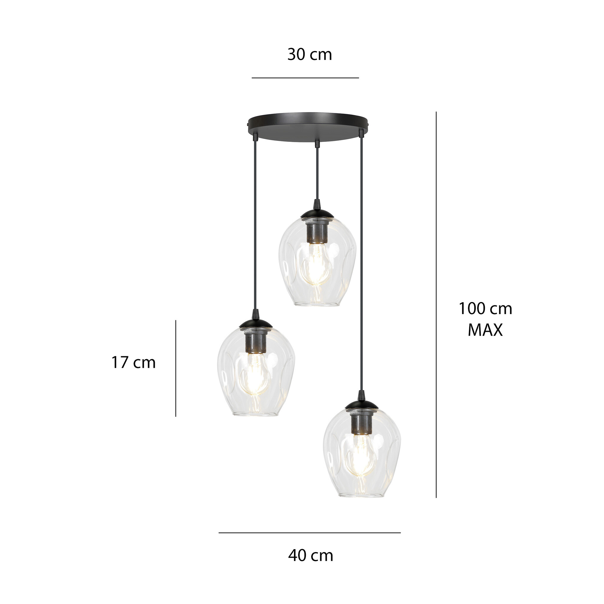 Nokia ronde 3L transparant glas hanglamp 3x E27
