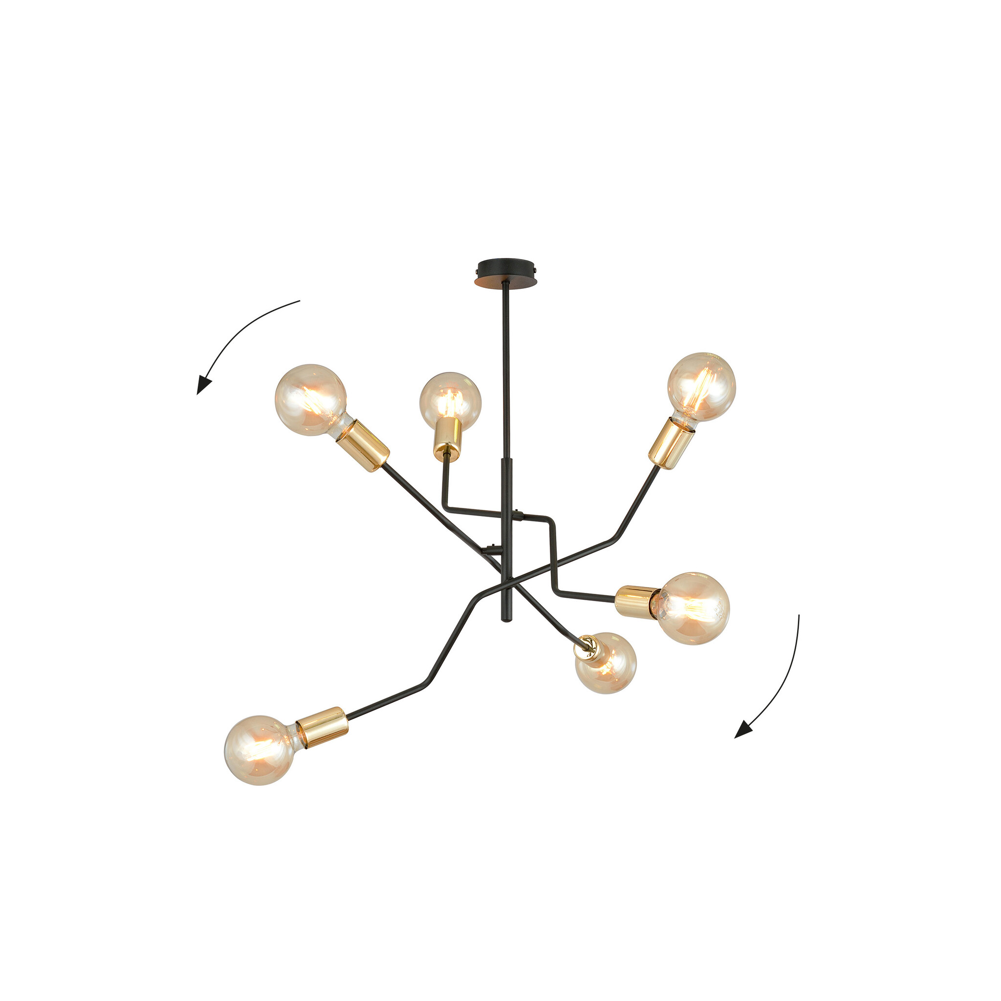 Specificaties Odense pendellamp 6 lampen E27 zwart en goud: