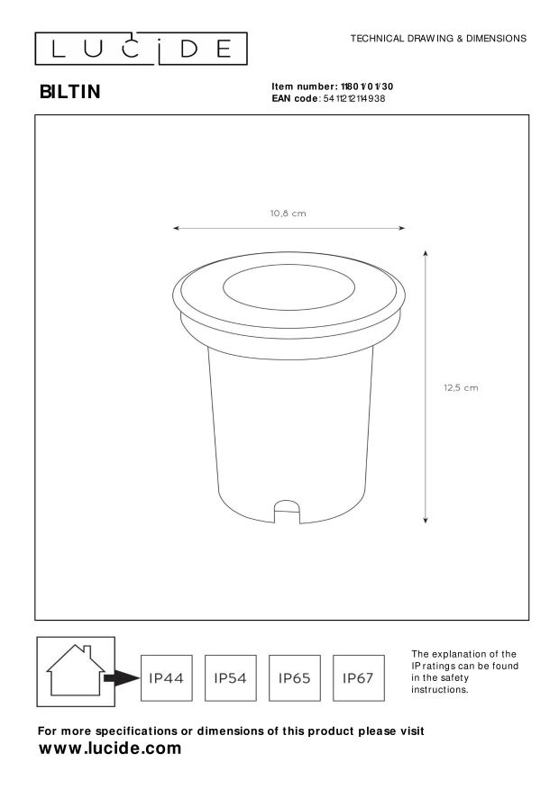 Specificaties outdoor ronde grondspot IP67 10,8 cm mat zwart: