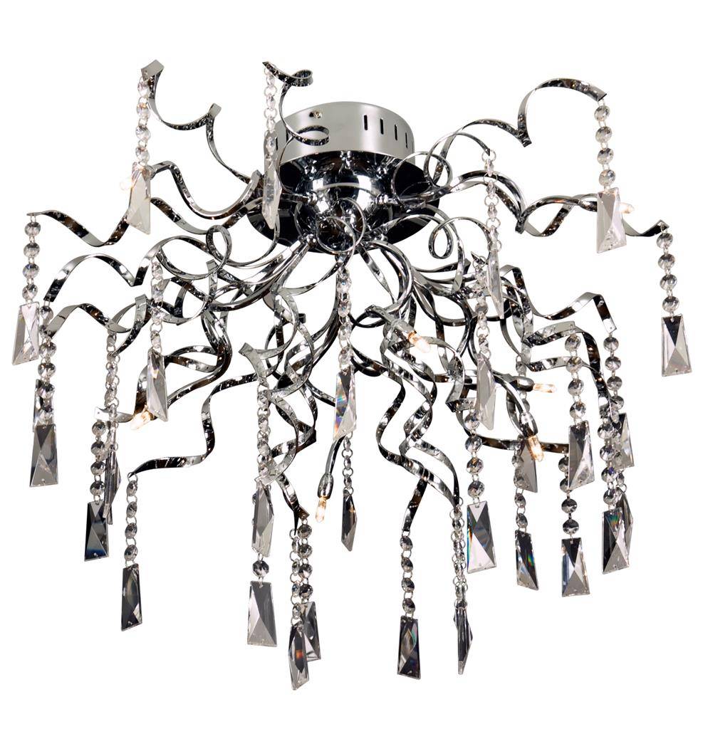 Deze plafondlamp kristal is gemaakt in chroom waarvan de gekrulde stangen een spin vormen. Ze is voorzien van 8 G9 halogeen lampjes die voor een sprankelend lichteffect zorgen maar ze is ook klaar om met LED lampjes te werken.