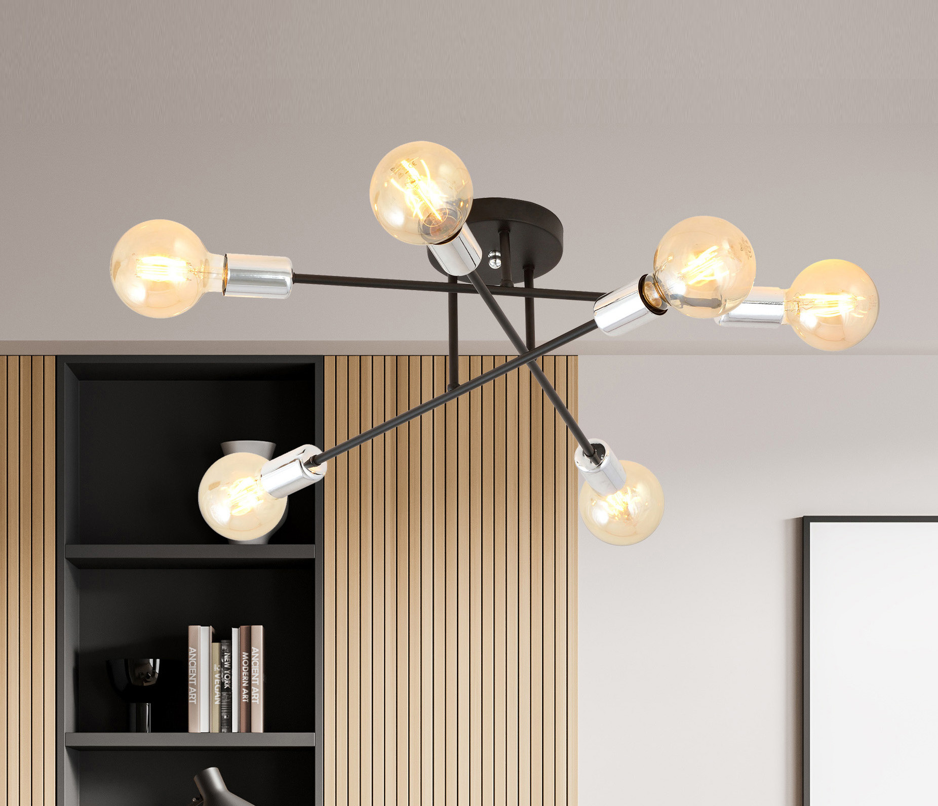 Als je op zoek bent naar speciale plafondverlichting, dan ben je bij Myplanetled.com goed terechtgekomen. Koop deze plafondlamp zwart met 6 armen zilveren E27 voet en we leveren deze snel en met de grootste zorg tot bij u. Ook voor meerdere stuks of professionele aankoop kan u bij ons terecht. Contacteer ons via chat, mail of telefoon en u zal overtuigd worden door onze vakkennis en service.