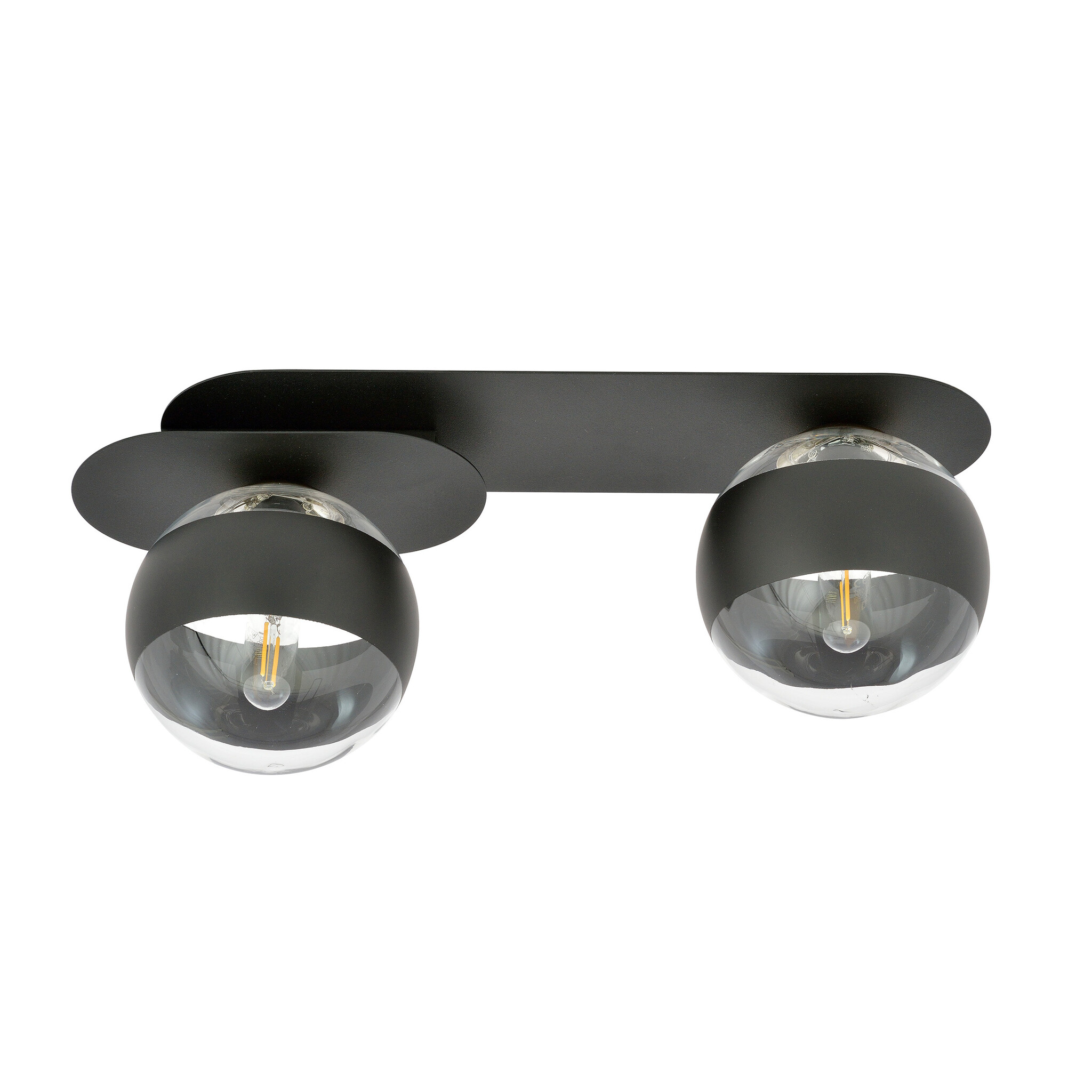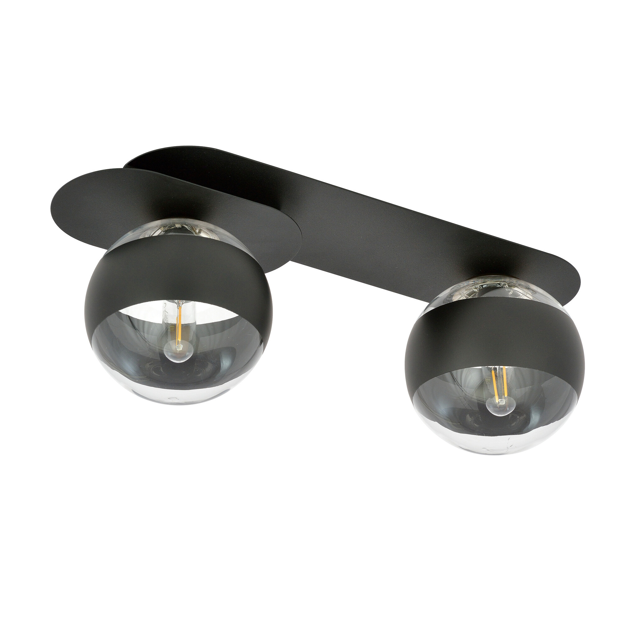 Specificaties Randers elegante zwarte dubbele ovalen plafondlamp met 2 gestreepte glazen bollen E14: