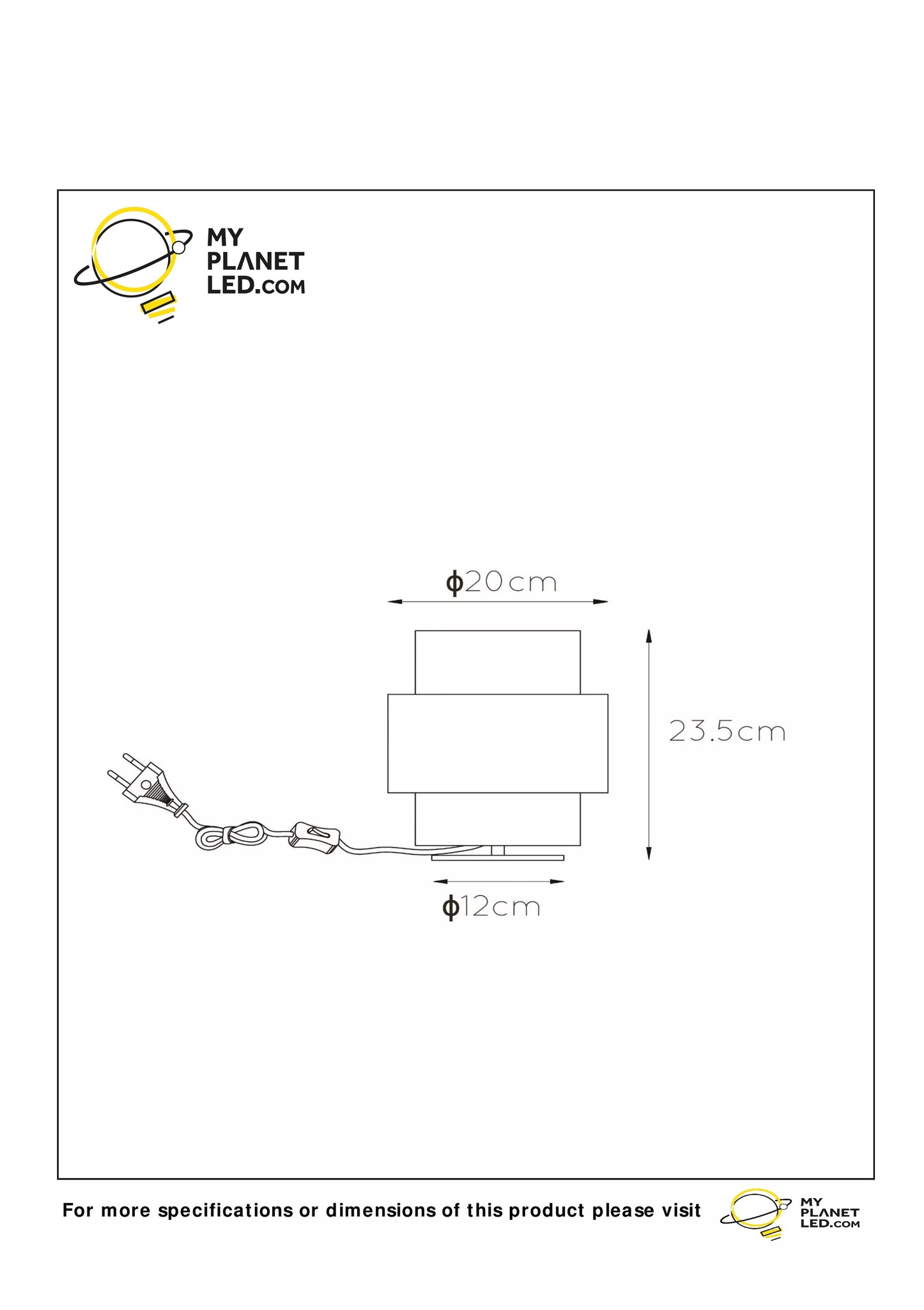 - Kap diameter boven: 15 cm
