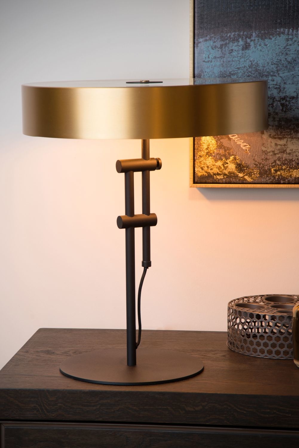 Specificaties retro mat goud/messing met zwart tafellamp 40 cm 2xE27:
