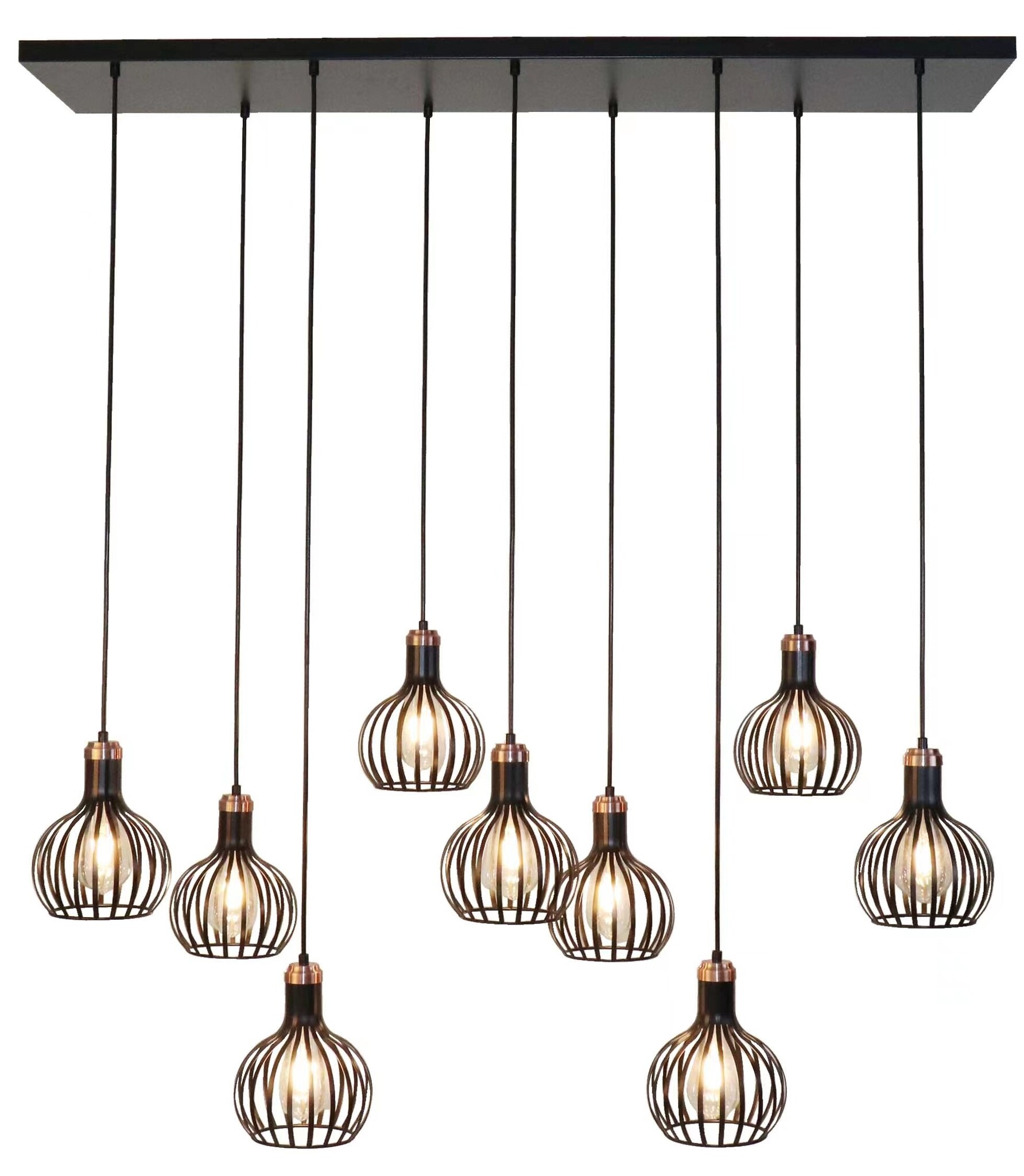 Specificaties Rio 9x E27 pendel zwart+koper: