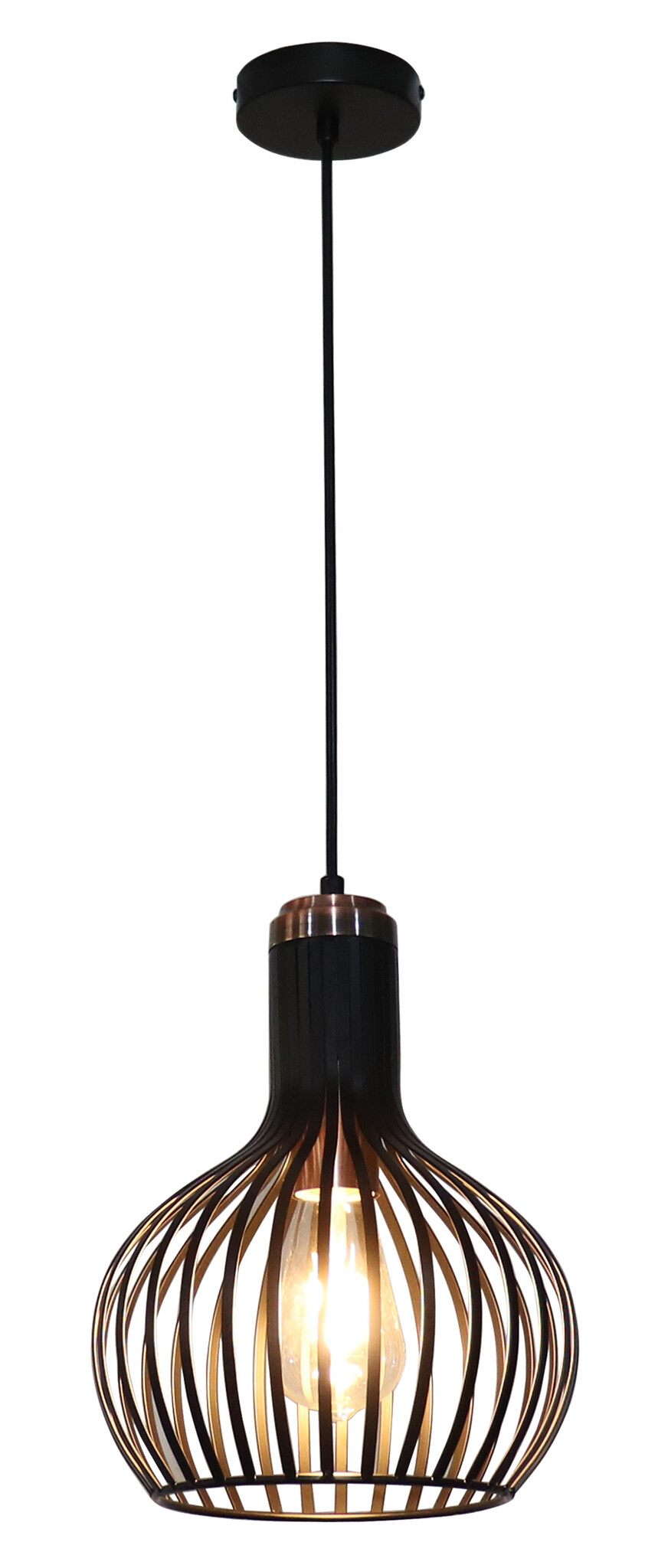 Specificaties Rio mooie 1x E27 pendel zwart+koper Ø23,5cm: