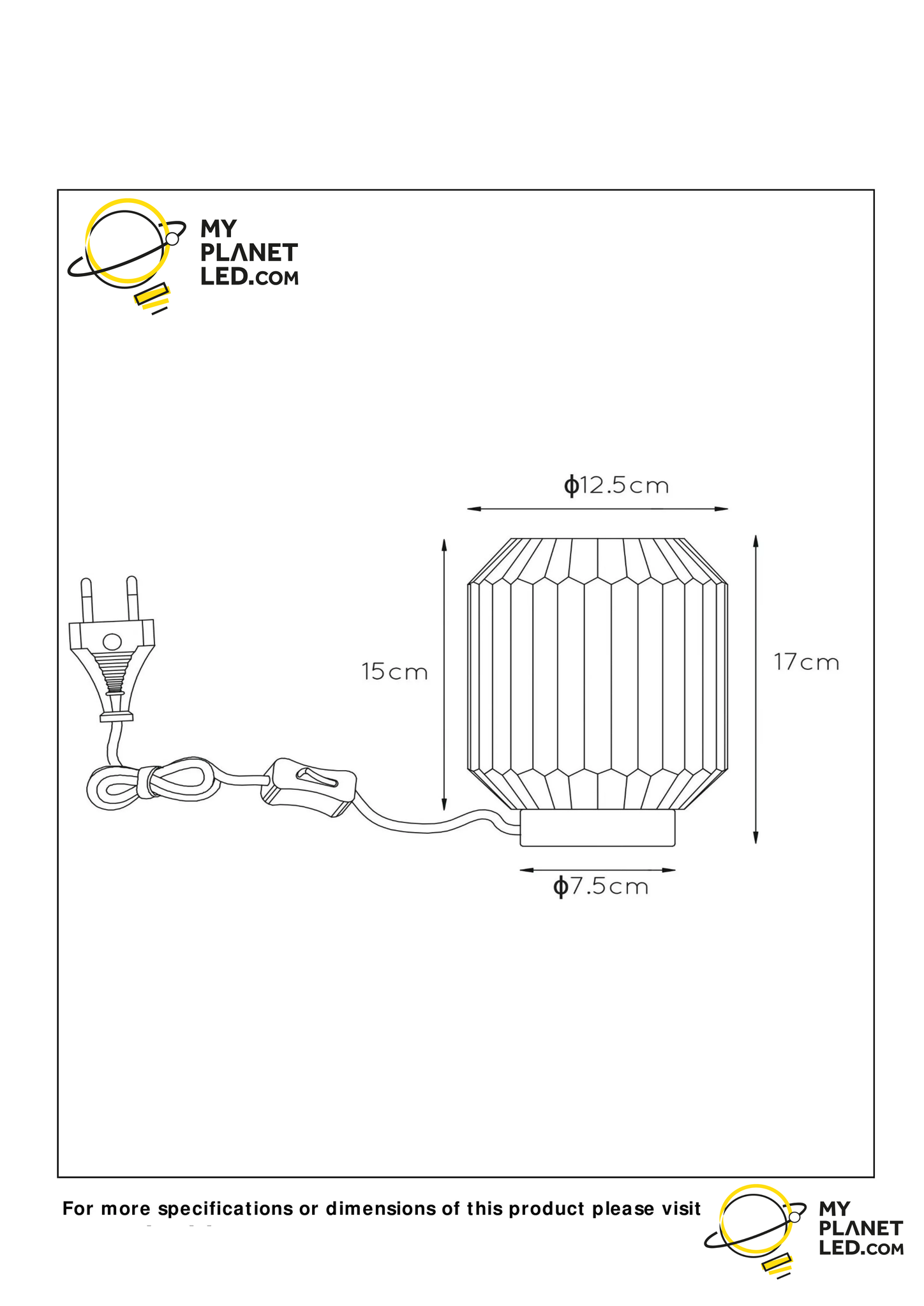 - Kap diameter onder: 13 cm