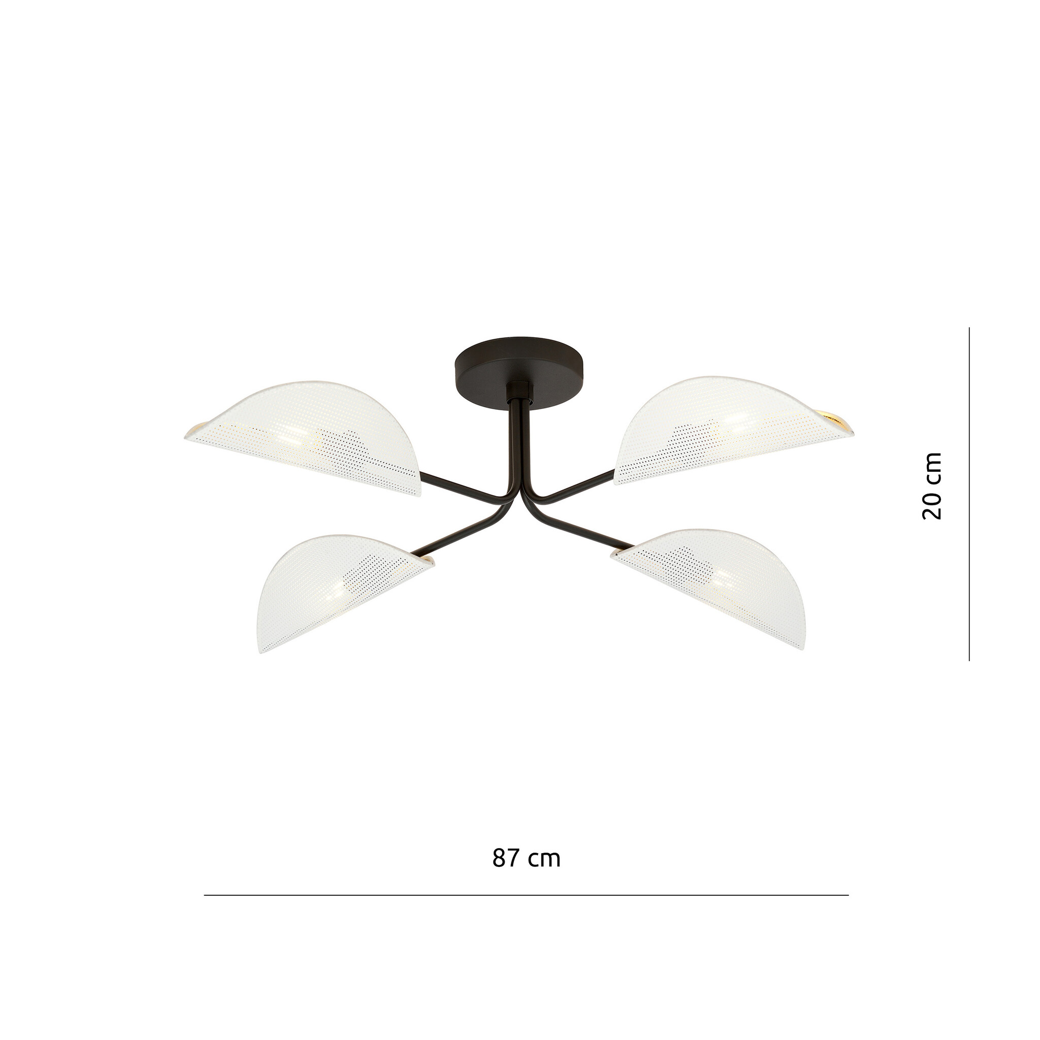 Specificaties Thisted zwarte elegante plafondlamp met witte en goud metalen afwerking 4x E14 :