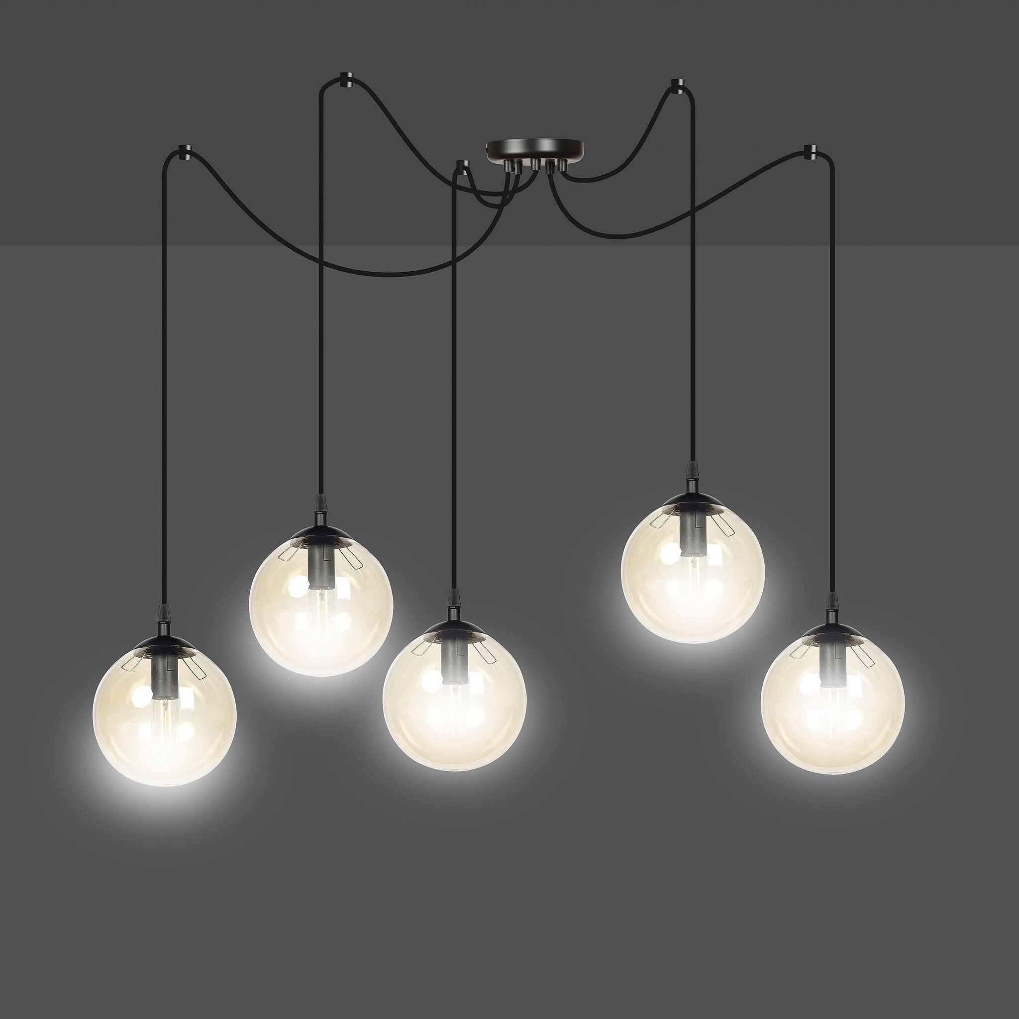 Uppsala 5L hanglamp met amber glazen bol 5x E14