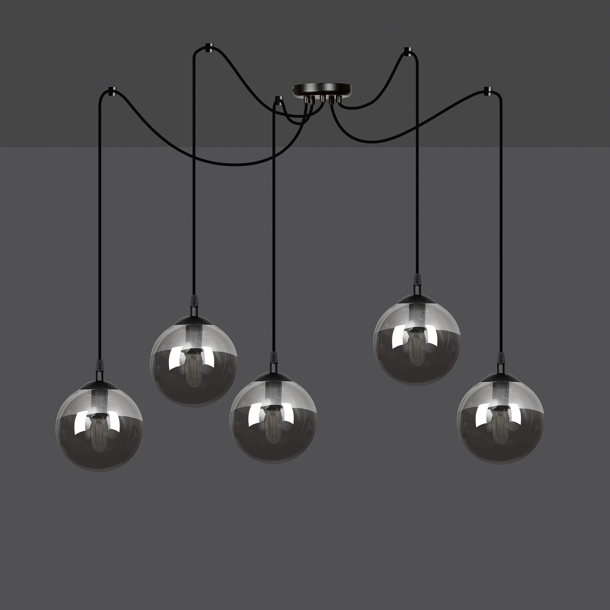 +32 (0)57/466.866 info@myplanetled.comUppsala grote zwarte 5L hanglamp gerookt glas 5x E14