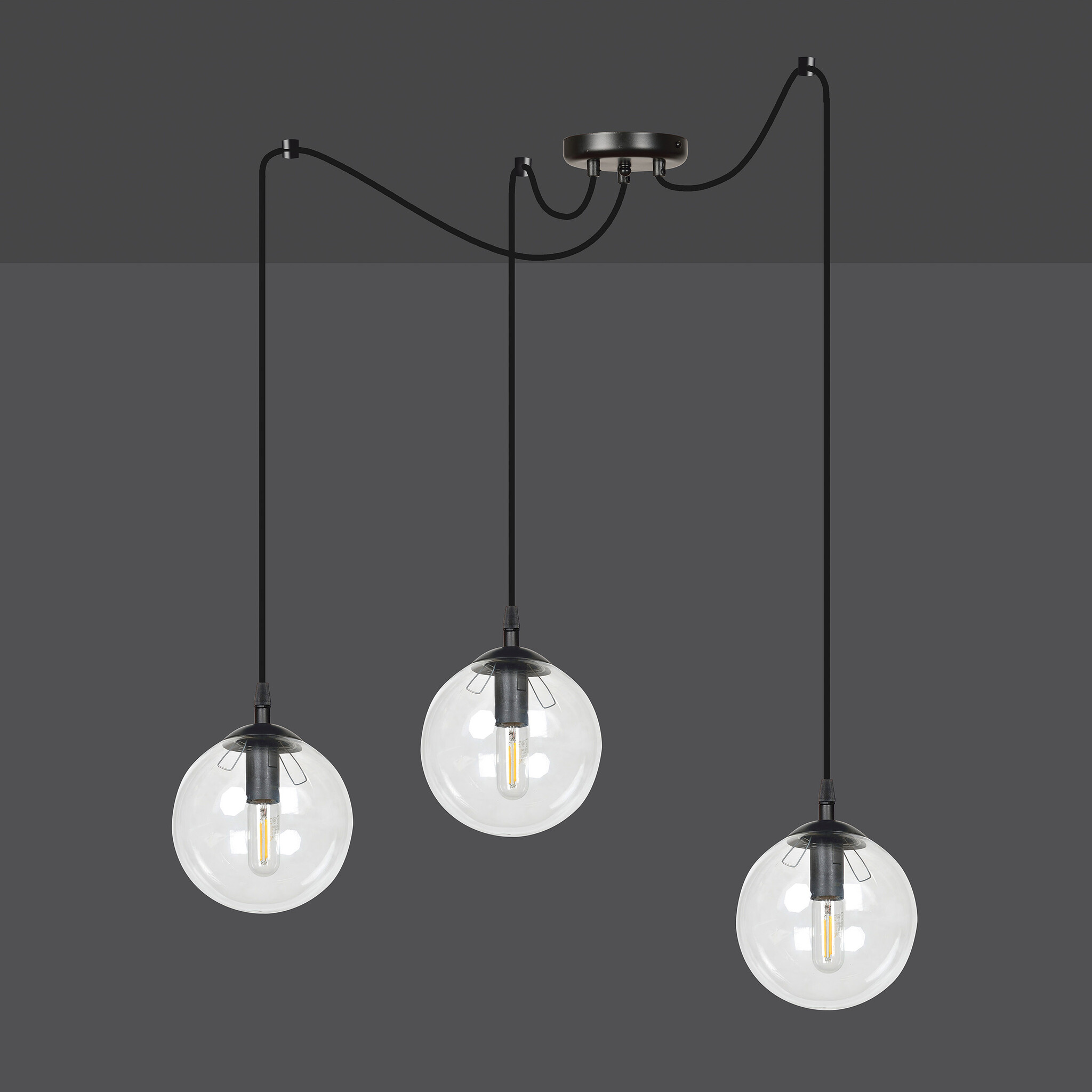 Uppsala zwarte 3L pendel lamp met transparant glas 3x E14
