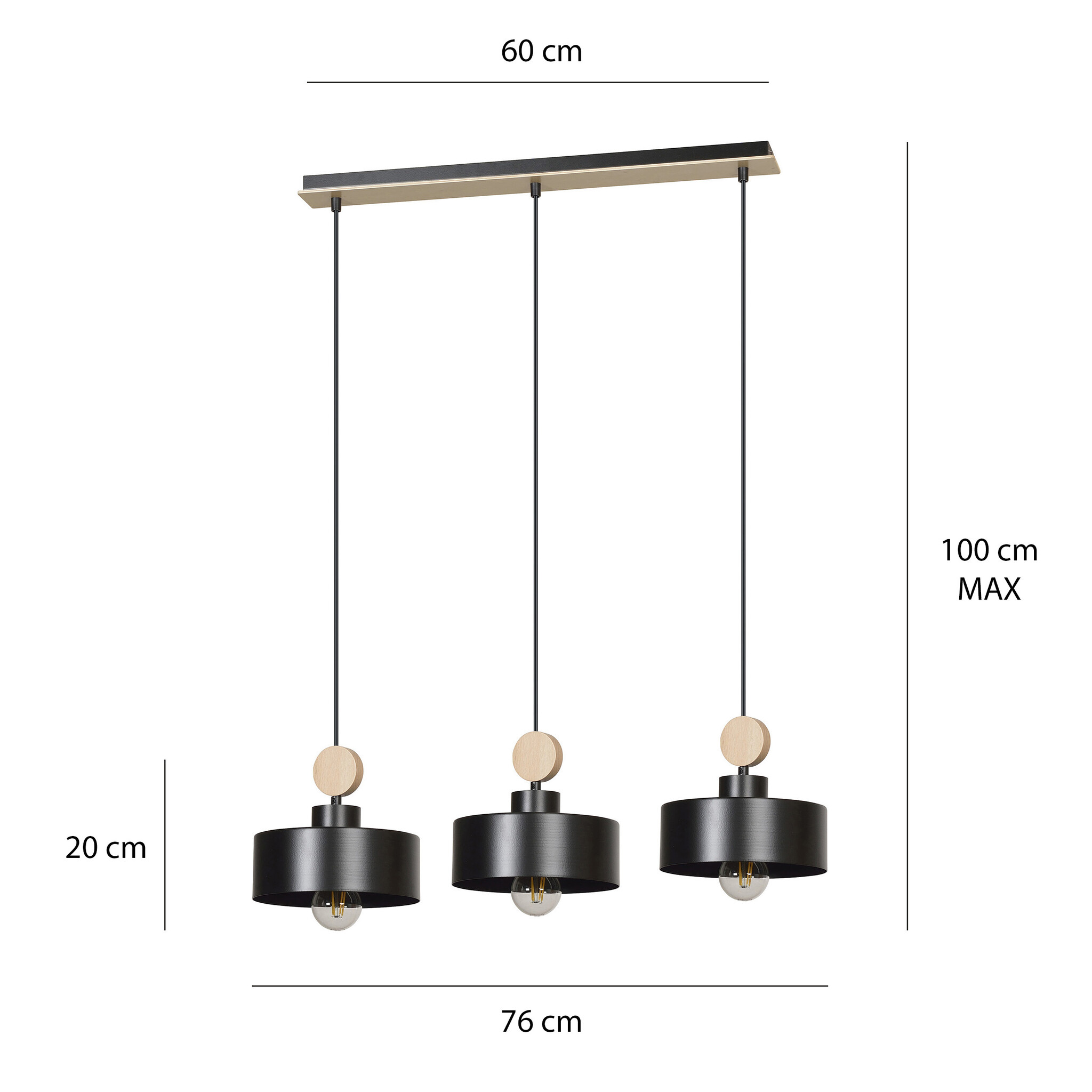 Vihti lange hanglamp 3L zwarte met houten accent 3x E27