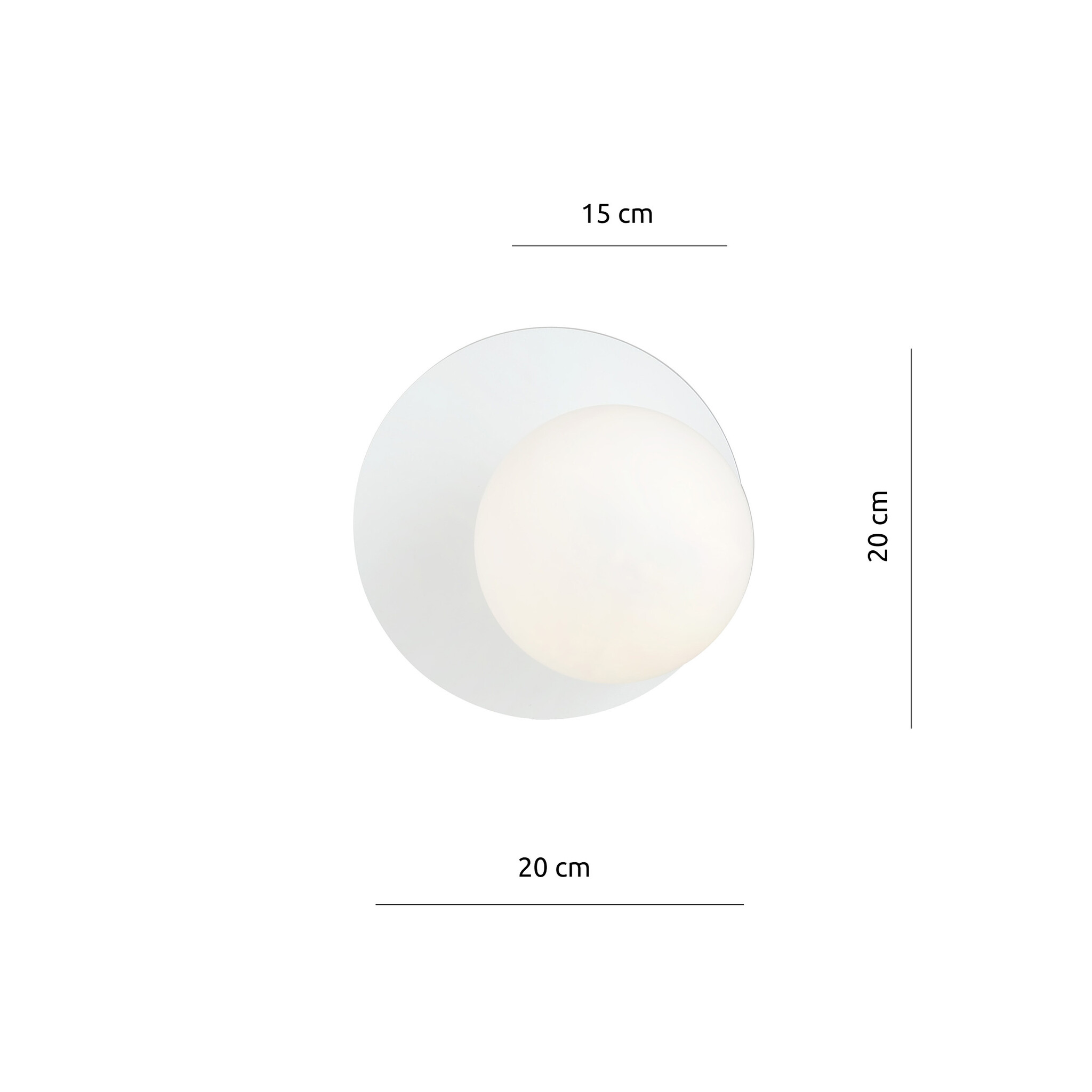 Specificaties volledig witte wandlamp 1x E14 met witte glazen bol afgewerkt: