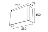 De transformator is inbegrepen. De breedte bedraagt 230mm, de hoogte 150mm en de diepte 72mm.