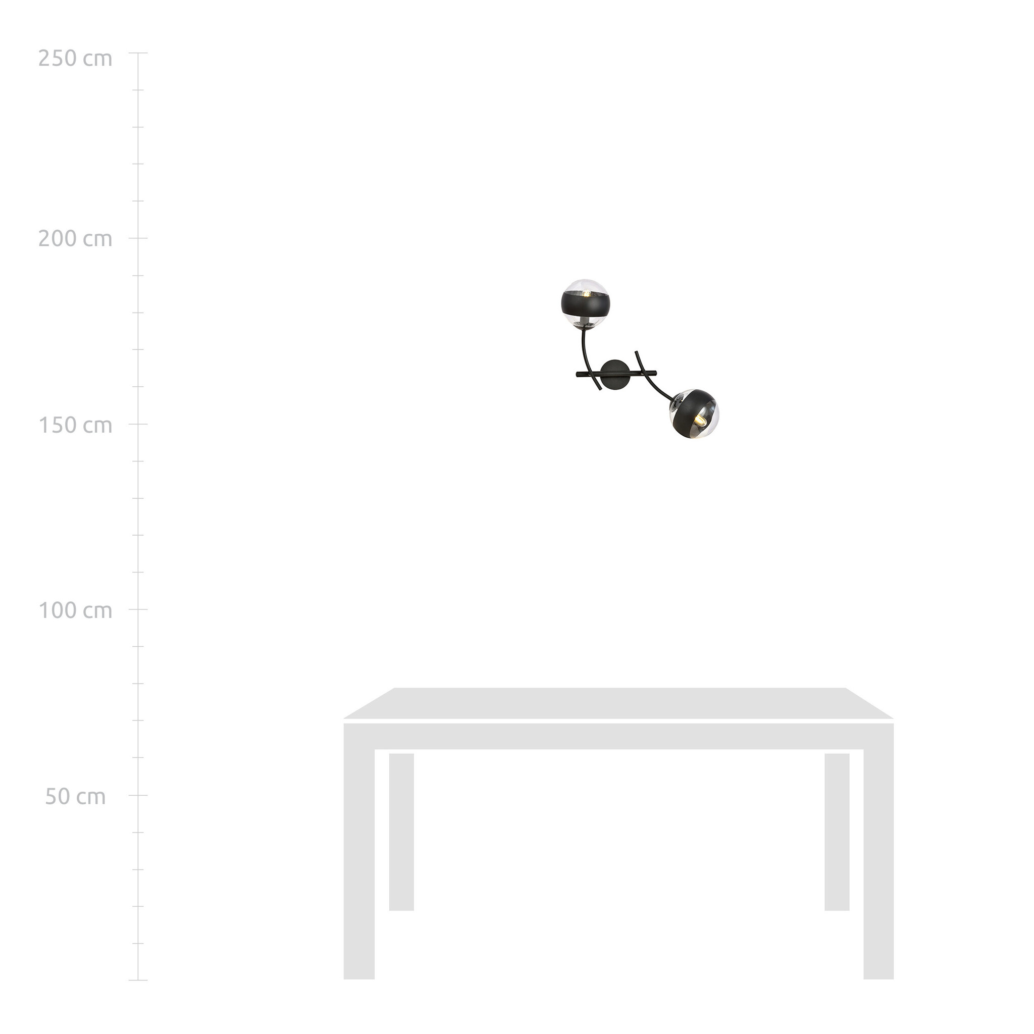 Specificaties wandlamp zwart met boog armen en glazen gestreepte bollen E14: