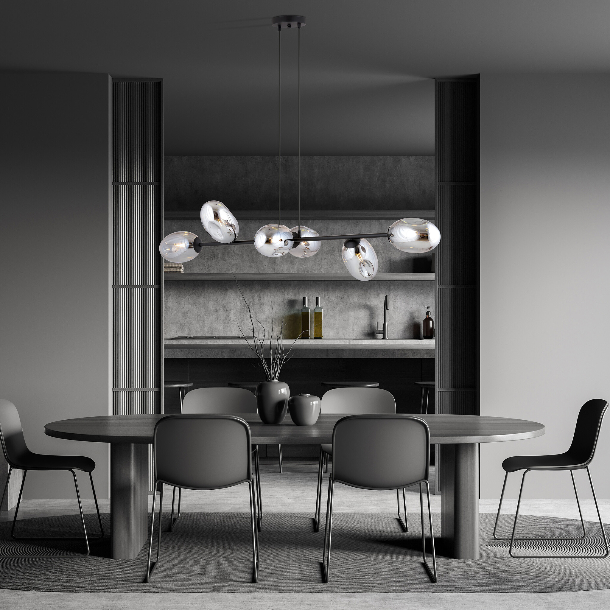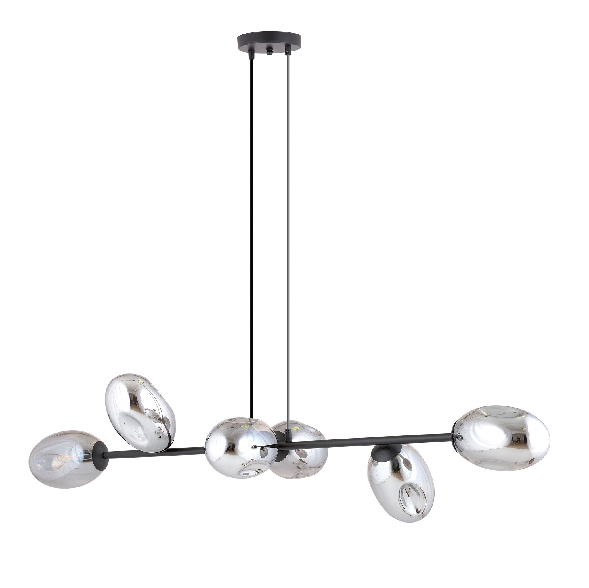 Zwarte grote pendellamp met 6 gefumeerde glazen E14