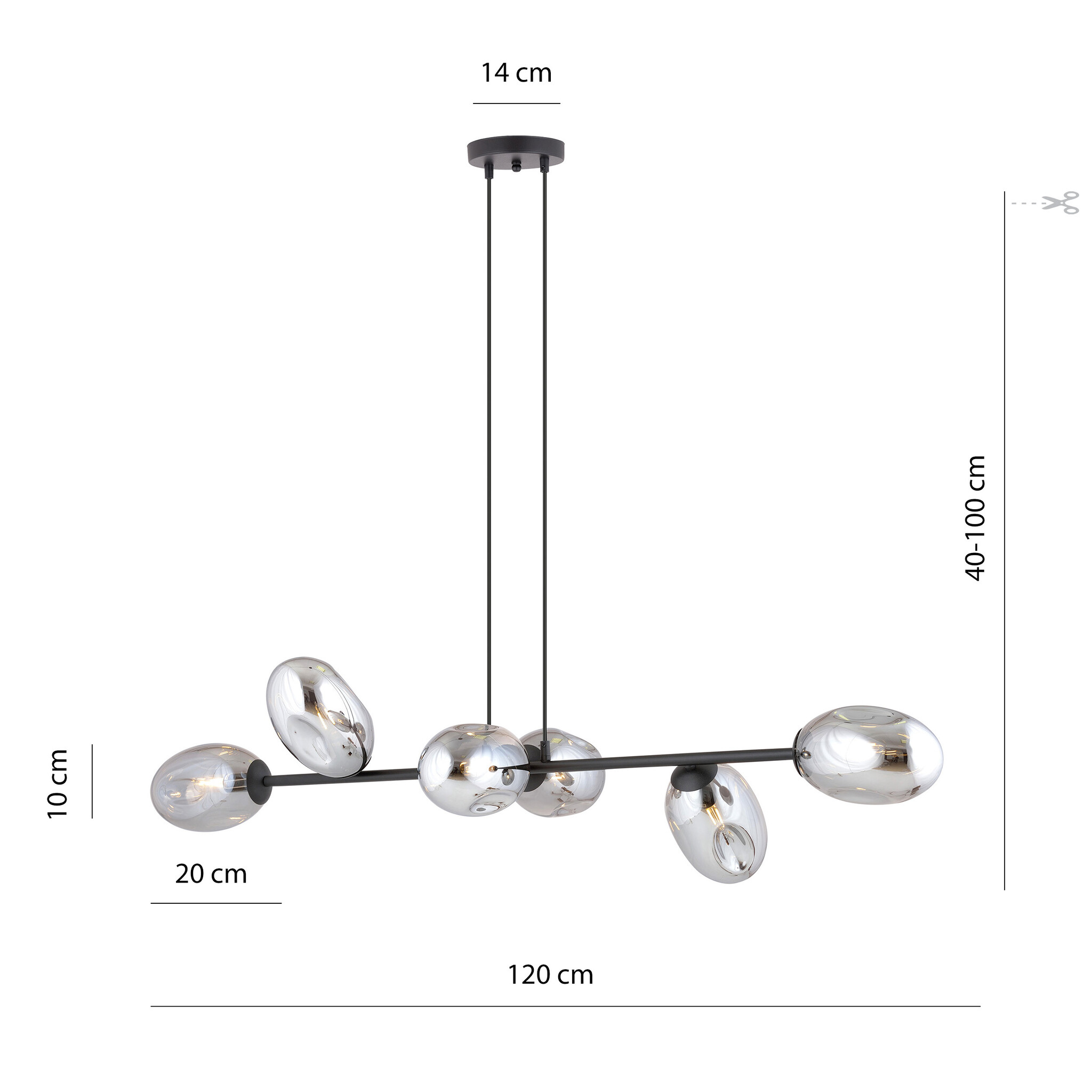 Als je op zoek bent naar design hanglampen, dan ben je bij Myplanetled.com goed terechtgekomen. Koop deze zwarte grote pendellamp met 6 gefumeerde glazen E14 en we leveren deze snel en met de grootste zorg tot bij u. Ook voor meerdere stuks of professionele aankoop kan u bij ons terecht. Contacteer ons via chat, mail of telefoon en u zal overtuigd worden door onze vakkennis en service.