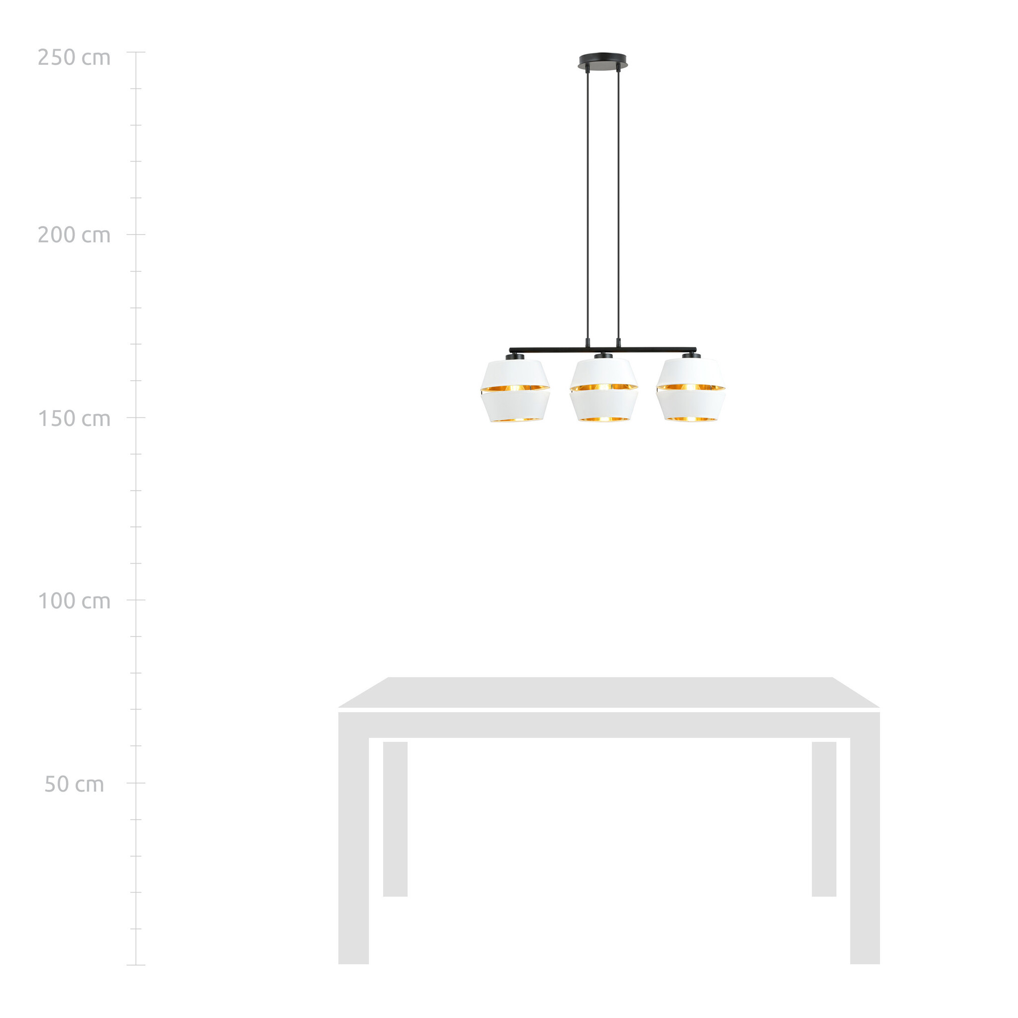 Specificaties zwarte pendel 3x E27 wit met gouden kappen metaal: